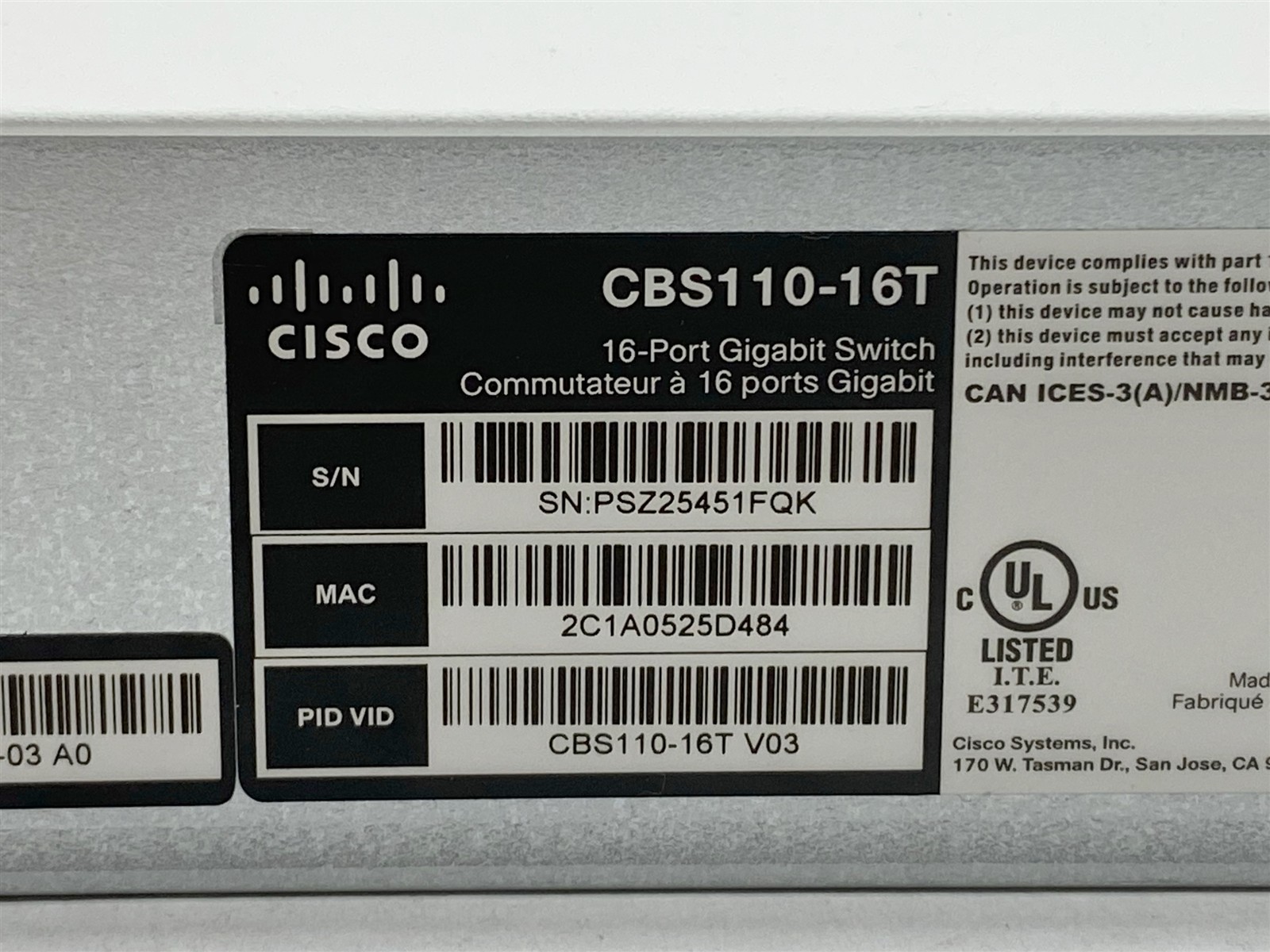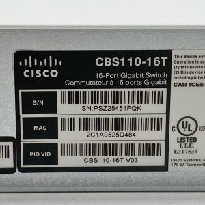 • (1) – CISCO BUSINESS 110 CBS110-16T V03 16-PORT L2 UNMANAGED GIGABIT ETHERNET SWITCH