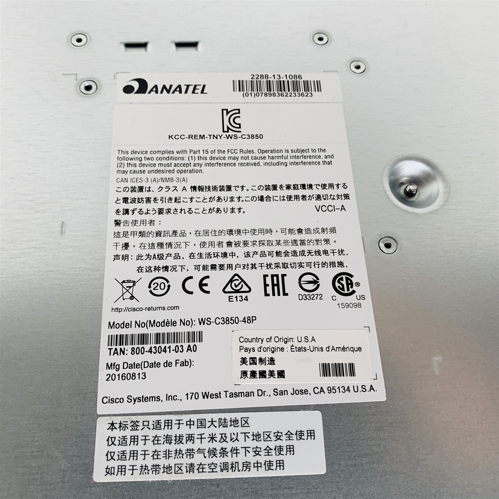 Cisco Catalyst 3850 48-Port PoE+ Gigabit Switch WS-C3850-48F-L V07 w/2*1100W PSU