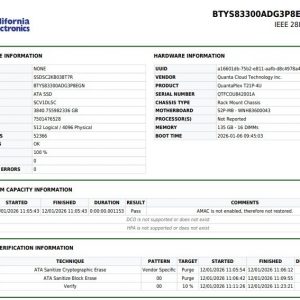 This drive is used but in excellent working order with a 100% health score according to SMART diagnostics. It has been sanitized using the IEEE 2883-2022 Clear method, ensuring zero recoverable data while preserving full drive functionality. No bad sectors were found during testing, and the drive is ready for immediate use. Wipe certificate in photos is representative of the unit in the picture. Your serial number may vary.