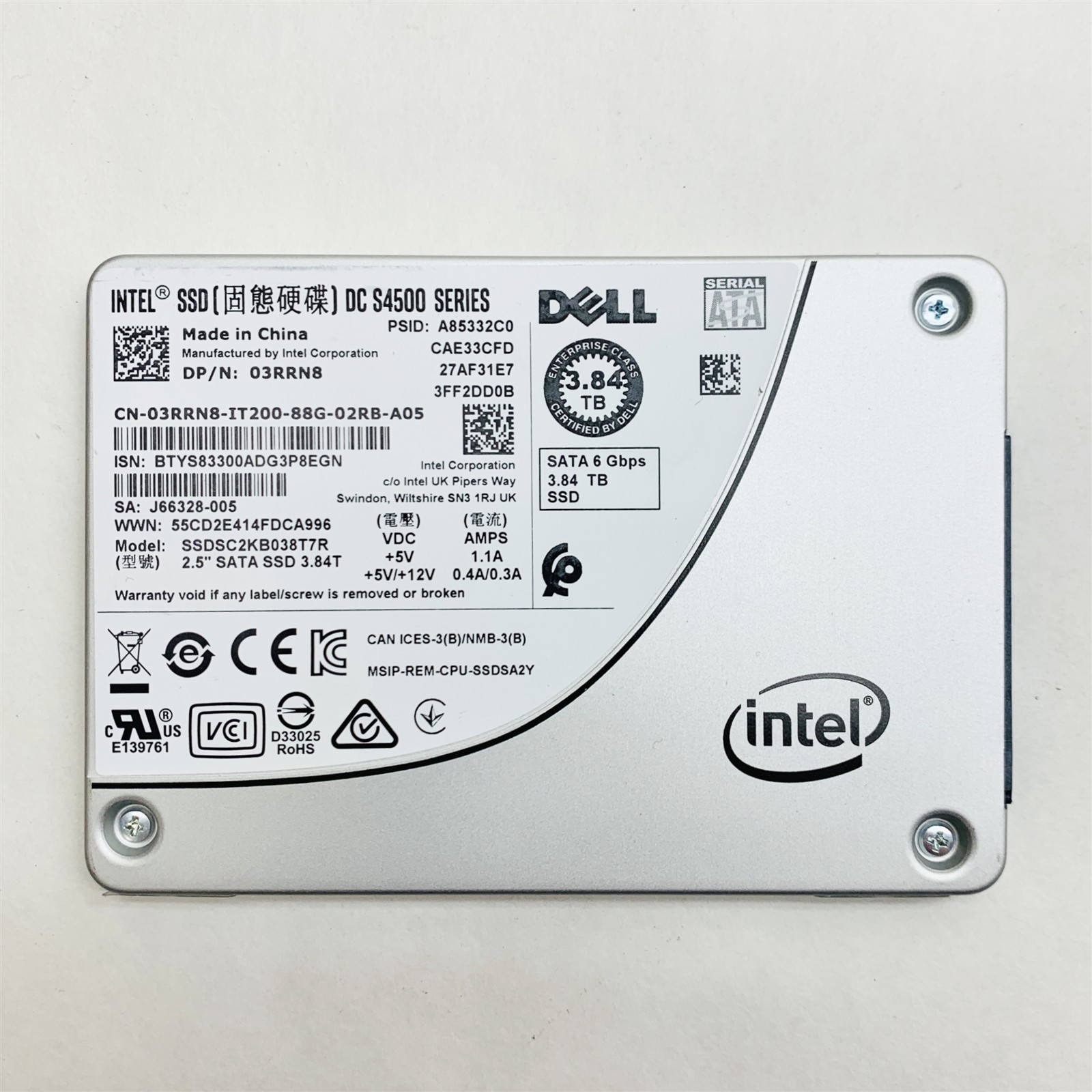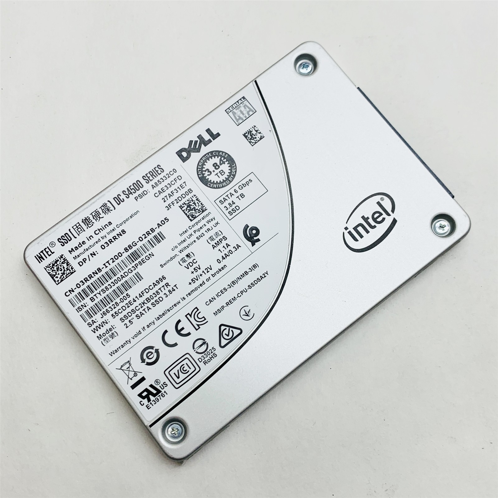• (1) – DELL 03RRN8 3.84TB 2.5″ SATA 6GBPS INTEL SSD DC S4500 SERIES SSD *100% HEALTH