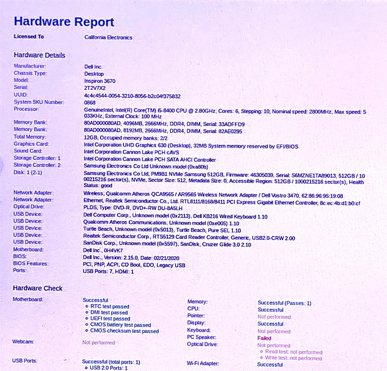 • (1) – DELL INSPIRON 3670 MT I5-8400 2.80GHZ 12GB DDR4 512GB NVME WIN11 PRO 24H2 WIFI