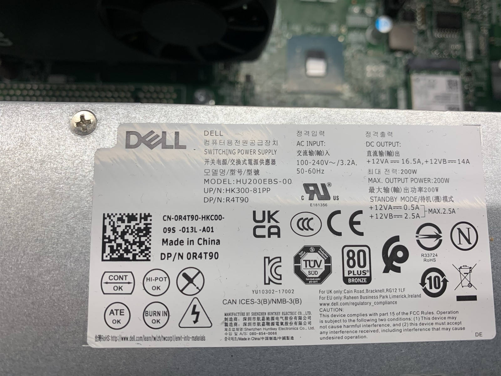 • (1) – 200W DELL POWER SUPPLY 0R4T90 80+ BRONZE