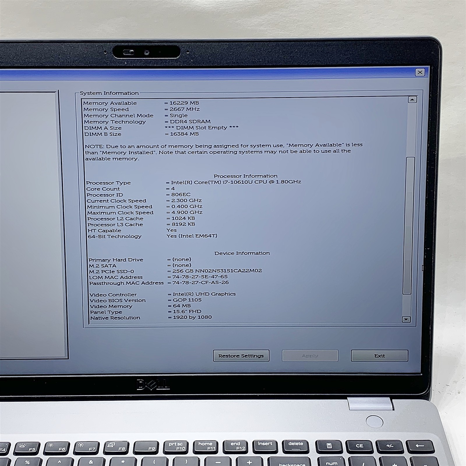 • (1) – DELL LATITUDE 5510 LAPTOP I7 10610U 1.80GHZ 15.6″ FHD 16GB 256GB NVME WINDOWS 11