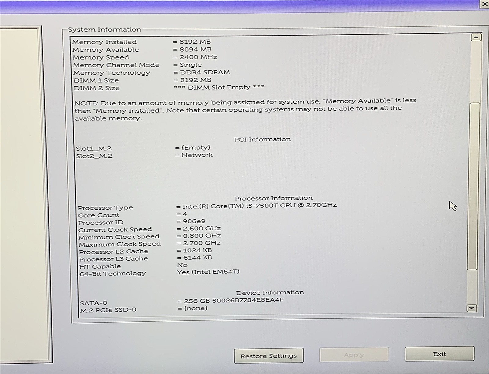 • (1) – DELL OPTIPLEX 3050 MICRO PC INTEL CORE I5 7500T 2.70GHZ 8GB 256GB SSD WINDOWS 11