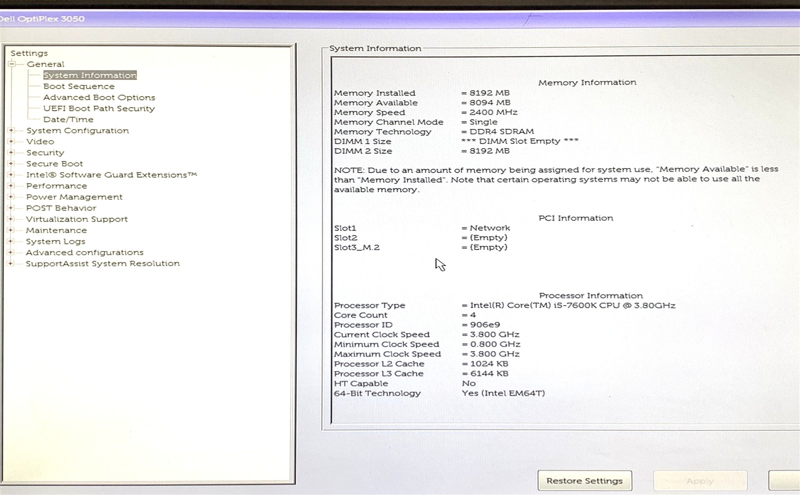 • (1) – DELL OPTIPLEX 3050 SFF CORE I5-7600K 3.80GHZ 8GB DDR4 512GB NVME WIN10P WIFI PC