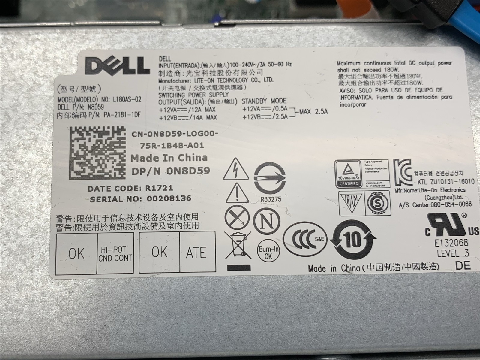 • (1) – 180W DELL POWER SUPPLY 0N8D59
