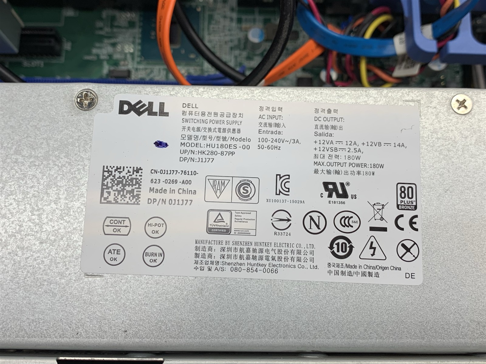 • (1) – 180W DELL POWER SUPPLY 0J1J77 80+ BRONZE
