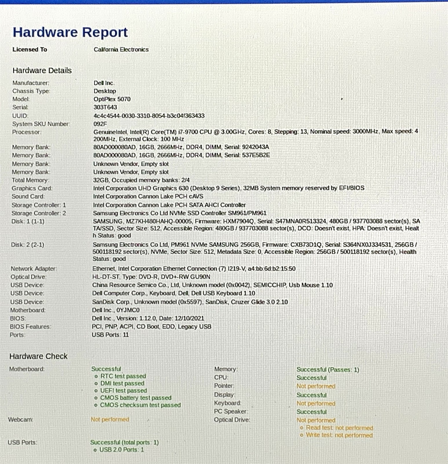 Dell OptiPlex 5070 SFF PC i7-9700 3GHz 32GB 256GB NVMe+480GB SSD Win11 Pro 25H2