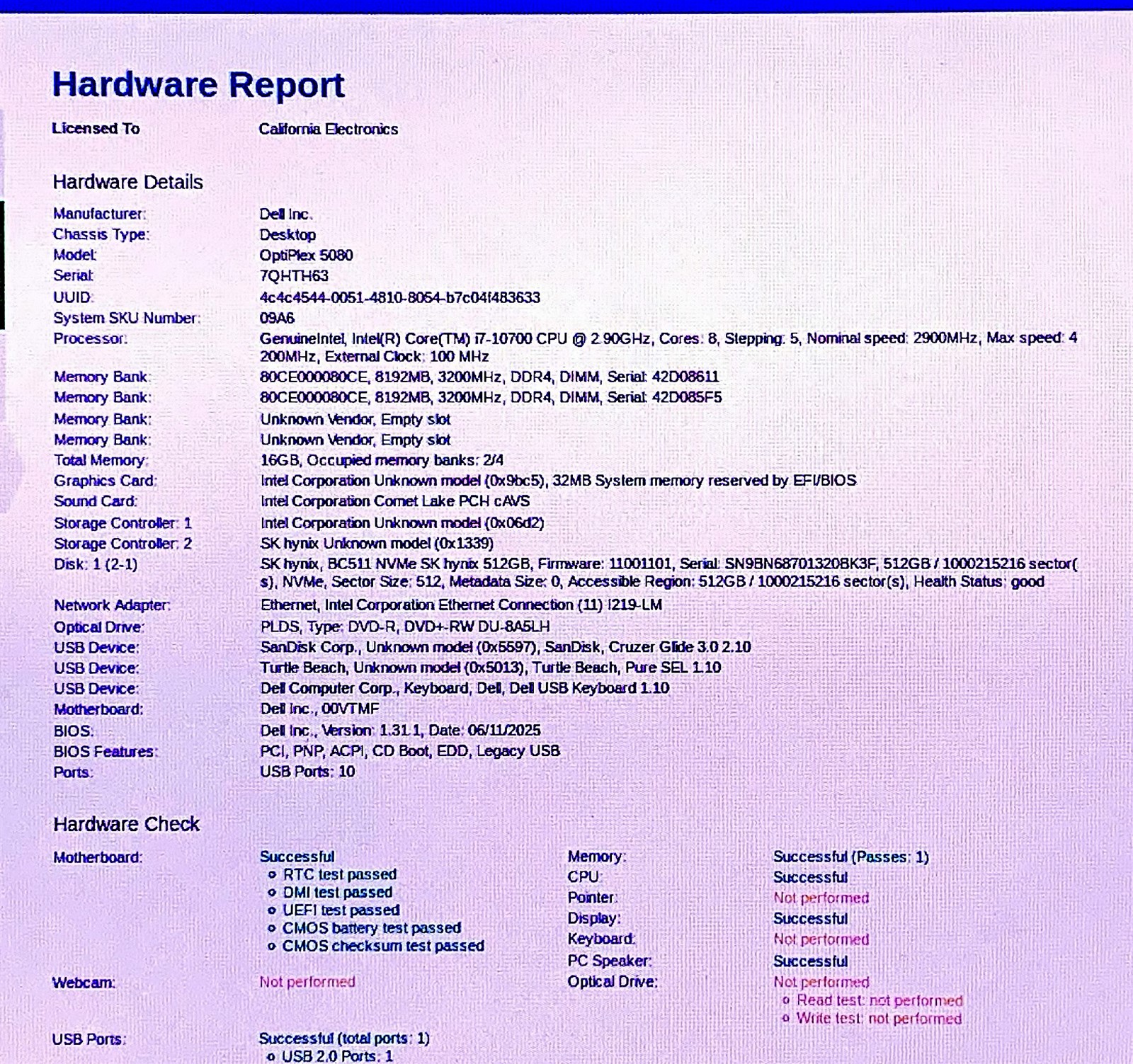 The unit powers on reliably, passes POST without issue, and successfully boots into Windows 11. The operating system is freshly installed on a fully wiped drive, ensuring a clean start for the next user. Please note that only Windows 11 has been pre-installed; the buyer will be responsible for completing the setup process, applying system updates, and installing any necessary drivers. For added security and compliance, both TPM 2.0 and Secure Boot have been enabled during the installation of Windows 11. *Please note that there is a minor cosmetic blemish upon top of unit, see last image for details*[/n]