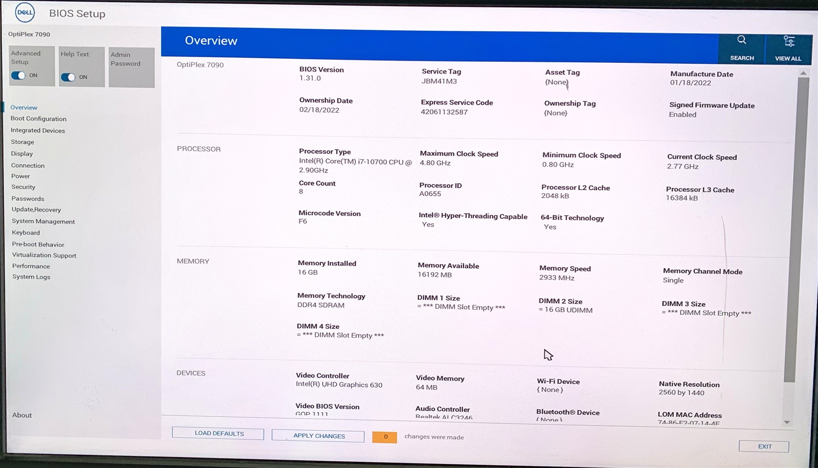 • (1) – DELL OPTIPLEX 7090 SFF I7-10700 2.90GHZ 16GB DDR4-3200 512GB NVME WIN11 PRO 25H2