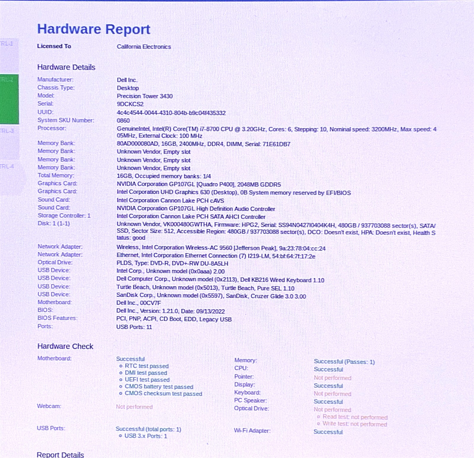 • (1) – DELL PRECISION TWR 3430 I7-8700 3.20GHZ 16GB ECC 480GB SSD W11P 25H2 WIFI P400
