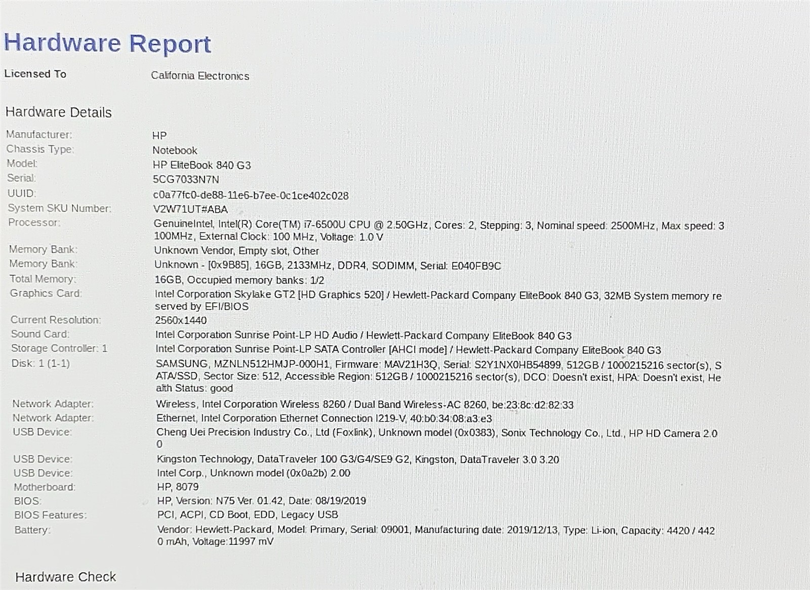 • (1) – HP ELITEBOOK 840 G3 LAPTOP I7 6500U 2.50GHZ 14″ QHD 16GB 512GB M.2 WINDOWS 11
