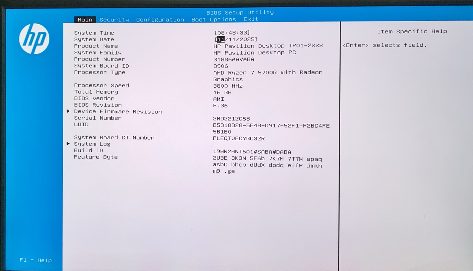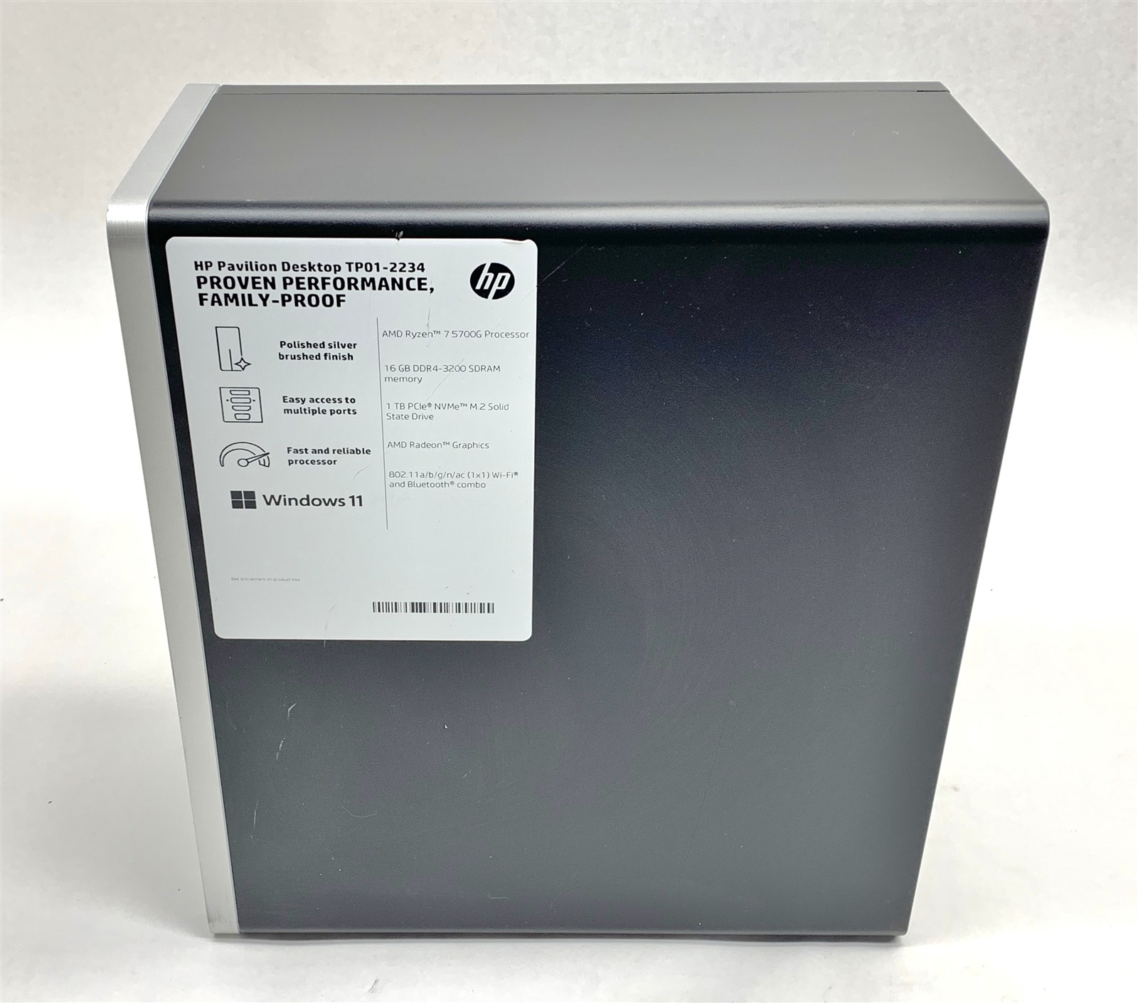 • (1) – HP PAVILION TP01-2234 AMD RYZEN 7 5700G 3.80GHZ 16GB 1TB NVME W11P 24H2 WIFI PC