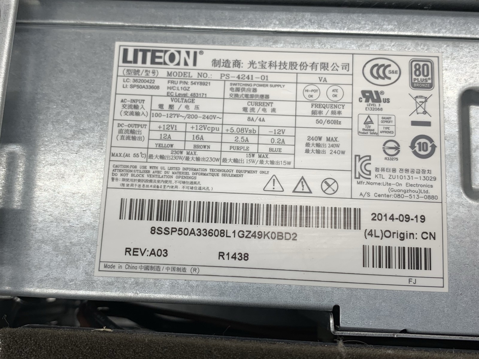 • (1) – 240W LENOVO LITEON POWER SUPPLY PS-4241-01 80+ BRONZE