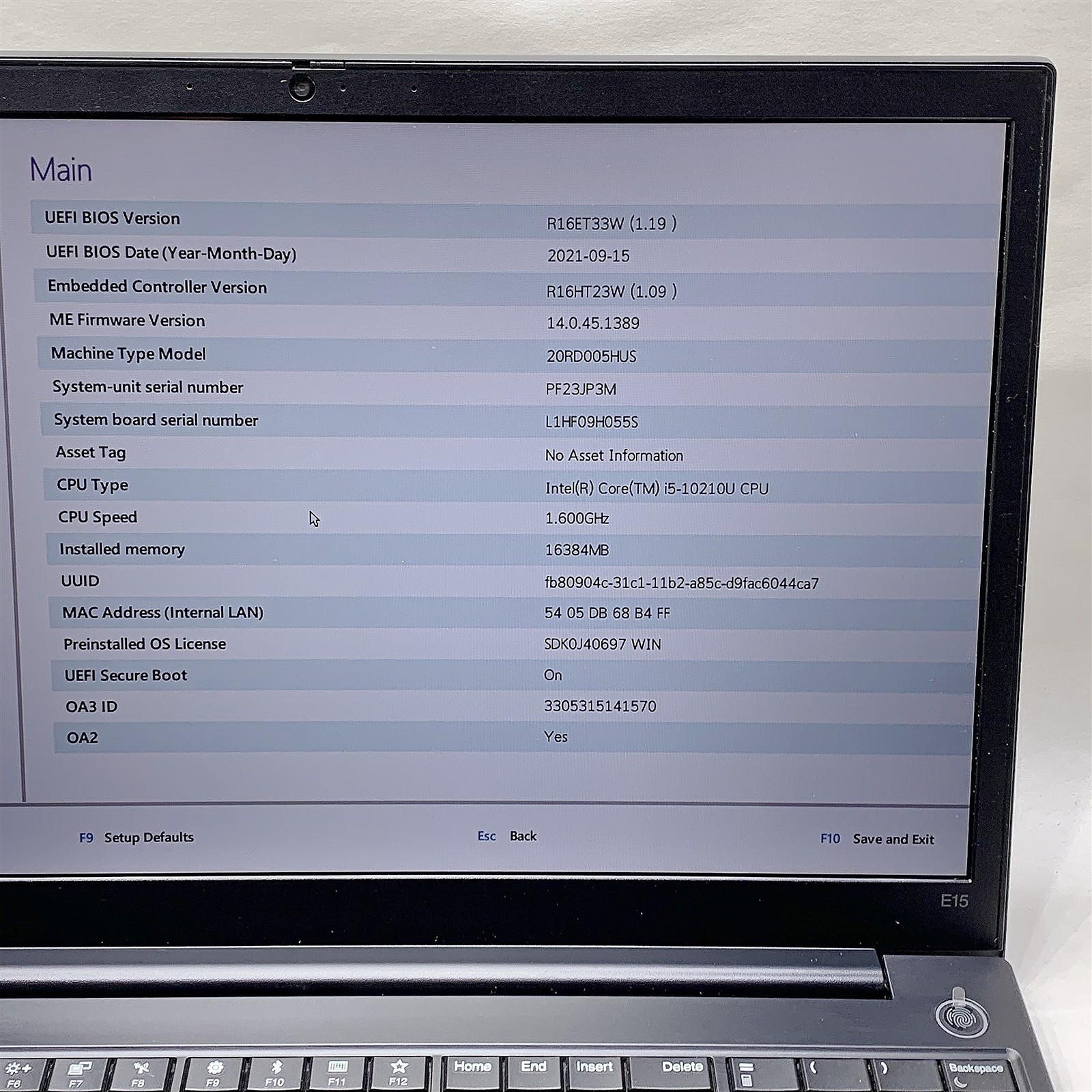 Lenovo ThinkPad E15 Laptop i5 10210U 1.6GHZ 15.6″ FHD 16GB 256GB NVMe Windows 11