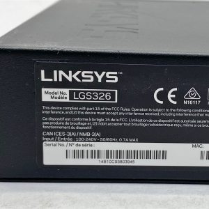 • (1) – LINKSYS LGS326 26-PORT BUSINESS SMART MANAGED GIGABIT NETWORK SWITCH