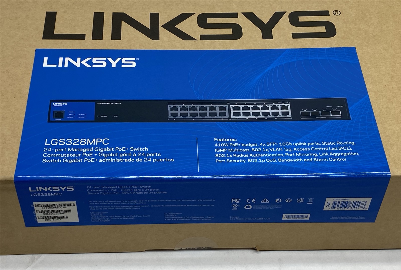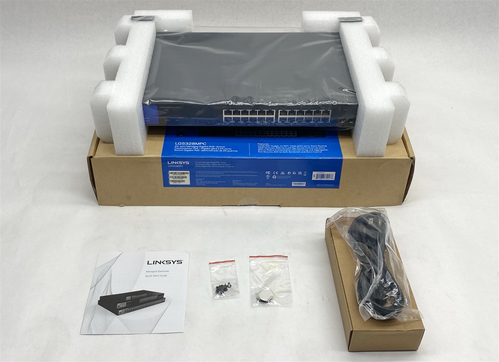 • (1) – LINKSYS LGS328MPC 24 PORT MANAGED GIGABIT ETHERNET NETWORK POE+ SWITCH NEW