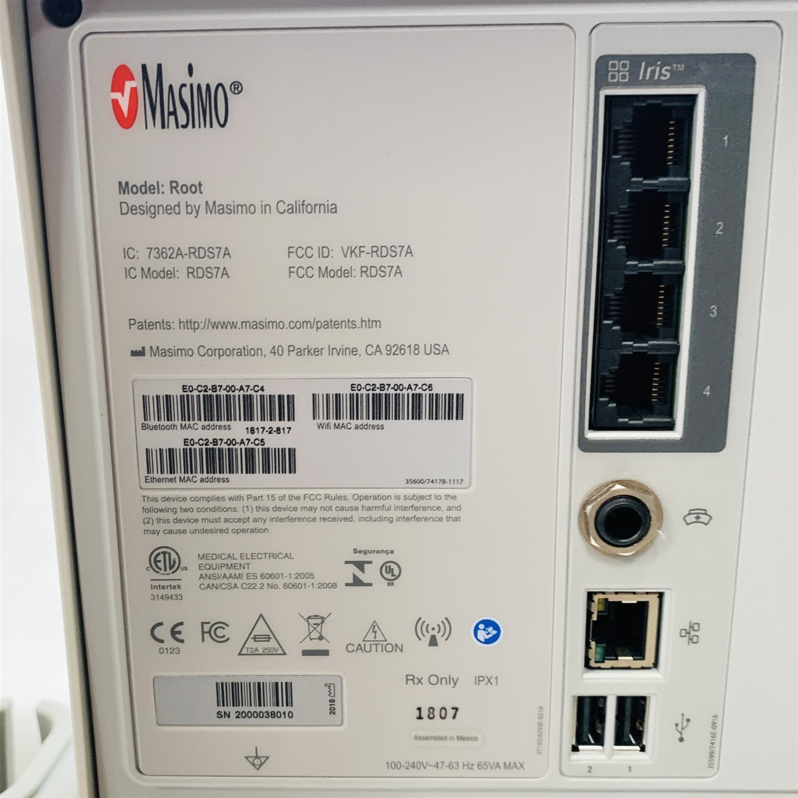 • (1) – MASIMO ROOT RDS7A PATIENT MONITOR STATION CONNECTIVITY PLATFORM *NO RADICAL 7*