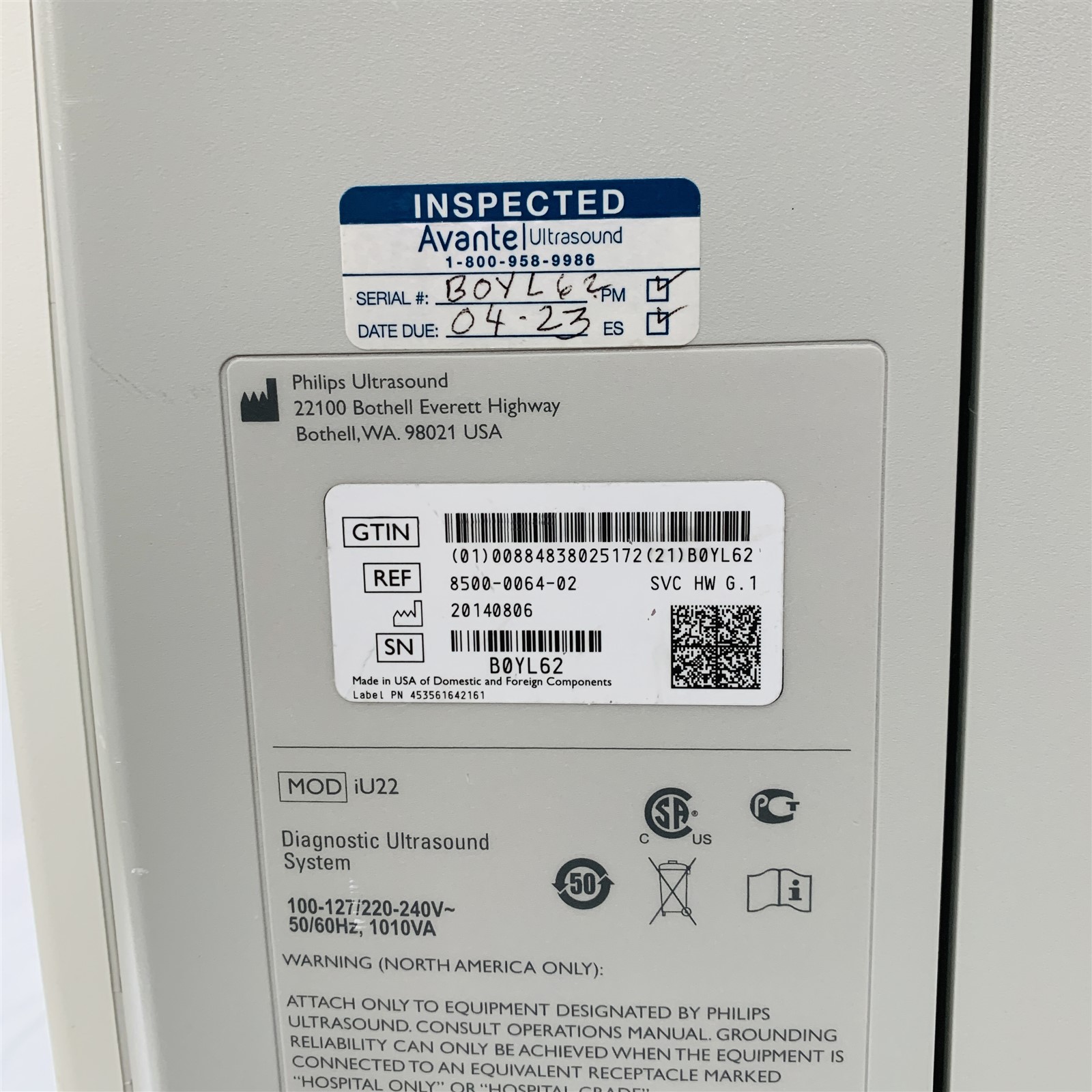 Philips iU22 Diagnostic Ultrasound Machine System Ref 8500-0064-02 w/C5-1 Probe