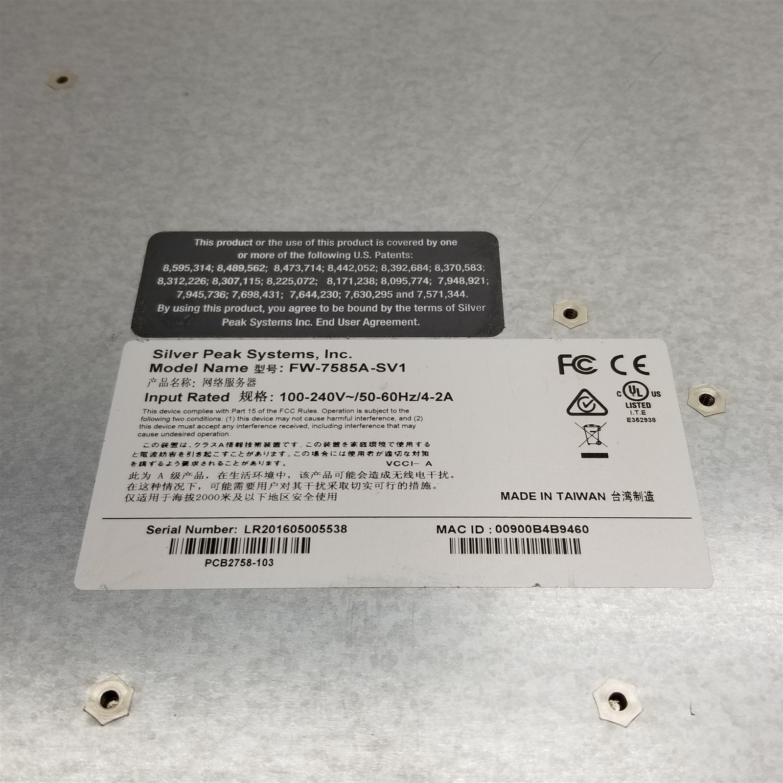 • (1) – SILVER PEAK UNITY EDGECONNECT EC-S SDWAN NETWORK SECURITY APPLIANCE FW-7585A-SV1