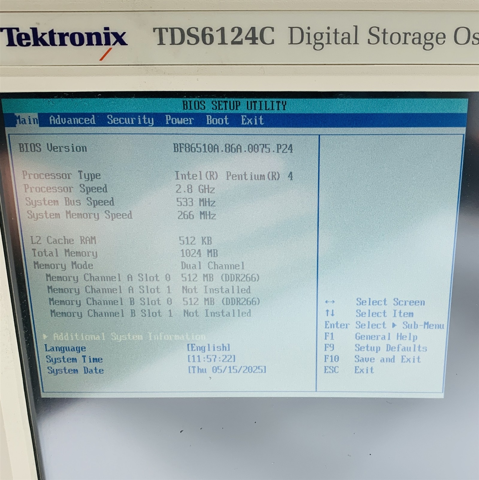 • (1) – TEKTRONIX TDS6124C DIGITAL STORAGE 12GHZ 40GS/S 4-CHANNEL OSCILLOSCO PEPENTIUM 4 2.8GHZ 1GB RAM 40GB HDD *NO OS*
